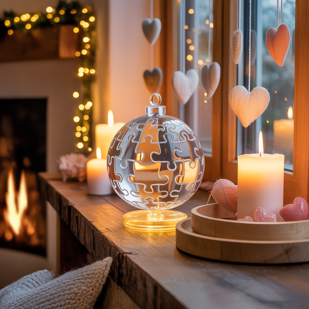 A heart puzzle stand adds a playful yet cozy decorative detail to shelves and bedside tables.