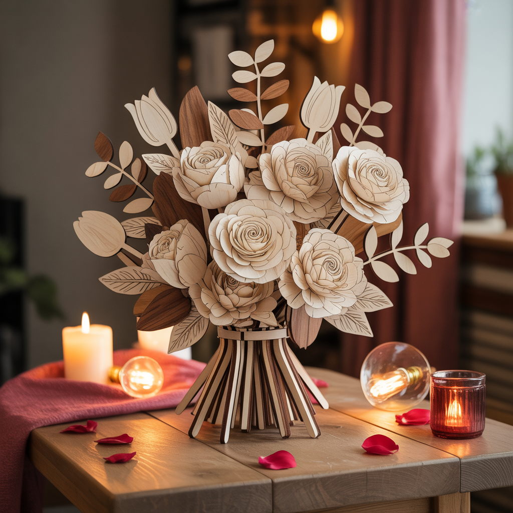 5. Wooden Flower Bouquet Puzzle for Handmade-Style Decor