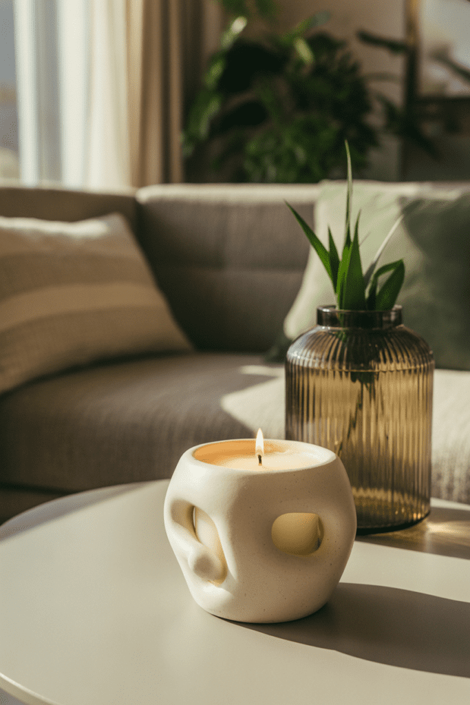 The soft flicker of candlelight adds movement and warmth, creating a calming focal point without clutter.