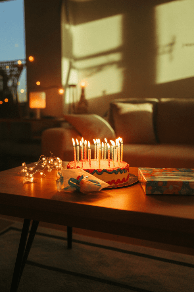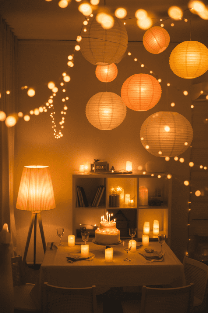 The soft glow creates a cozy atmosphere that makes your March birthday feel elevated rather than casual.