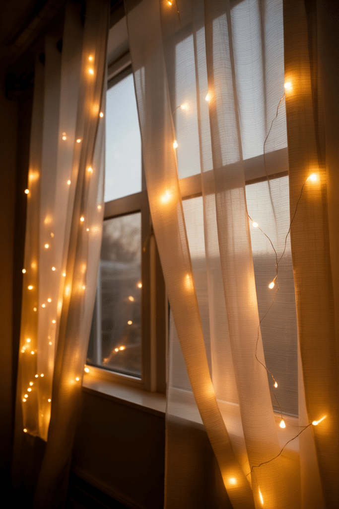 Hide string lights behind curtains for a diffused, luxurious glow.