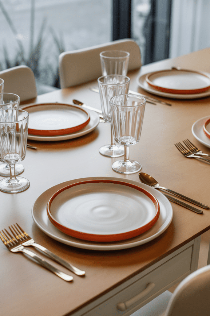 Choosing cohesive, simple tableware makes the entire setup feel intentional.